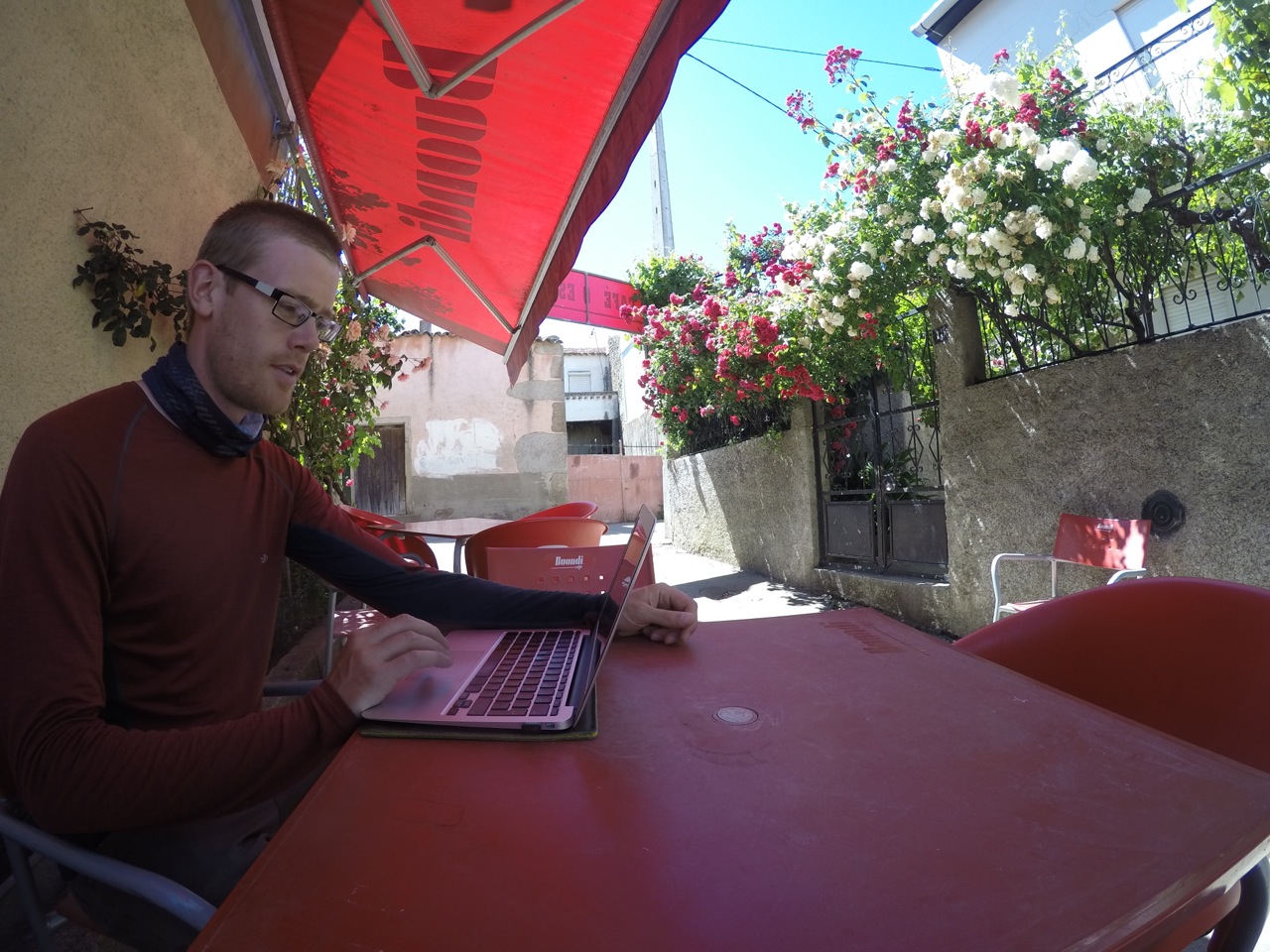 So we spent 7 hours on a train. It was fun, we ate a lot of messy food, played cards and enjoyed the landscape. There were loads of weird hills, valleys and castles, and we occasionally had vague envy that we weren’t riding. When we saw the GPS dot eating up the miles to Catalonia though we felt justified in our choice!