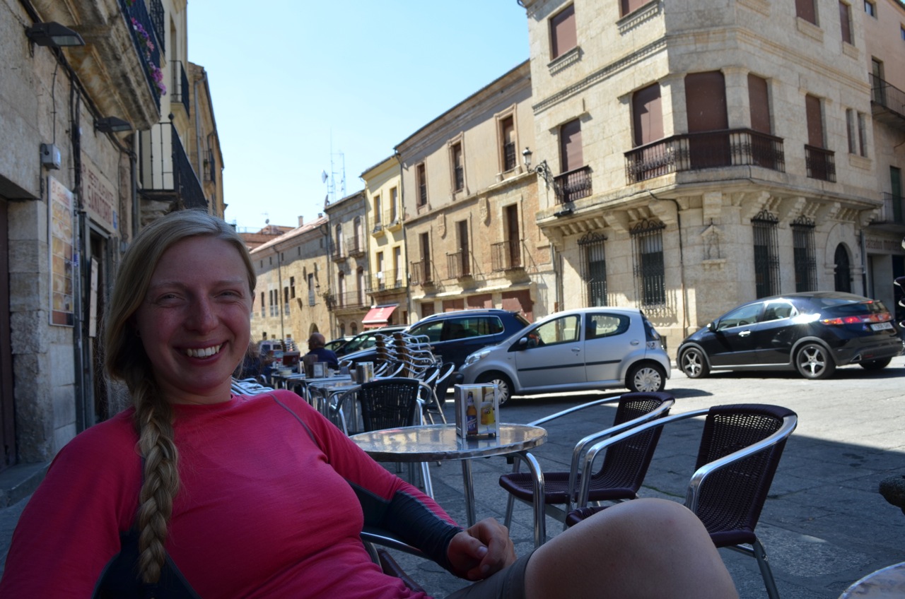 We had been mocking the Spanish system where you can only put three bikes on a train, but once we’d settled down into the roomy comfy seats and plugged our devices into the handy armrest plug sockets it all started to make sense. As long as you book early you’re guaranteed space for your bike and you can chill out about the whole thing. Compare the UK where you never know whether you’ll be fighting for space with pushchairs and other cyclists, or having to constantly apologise while wrestling your bike past 20 standing passengers to park it unsupported near the toilet!