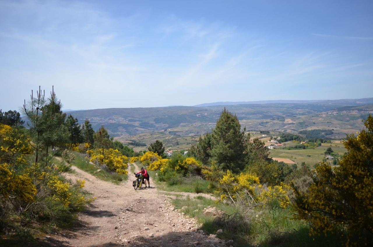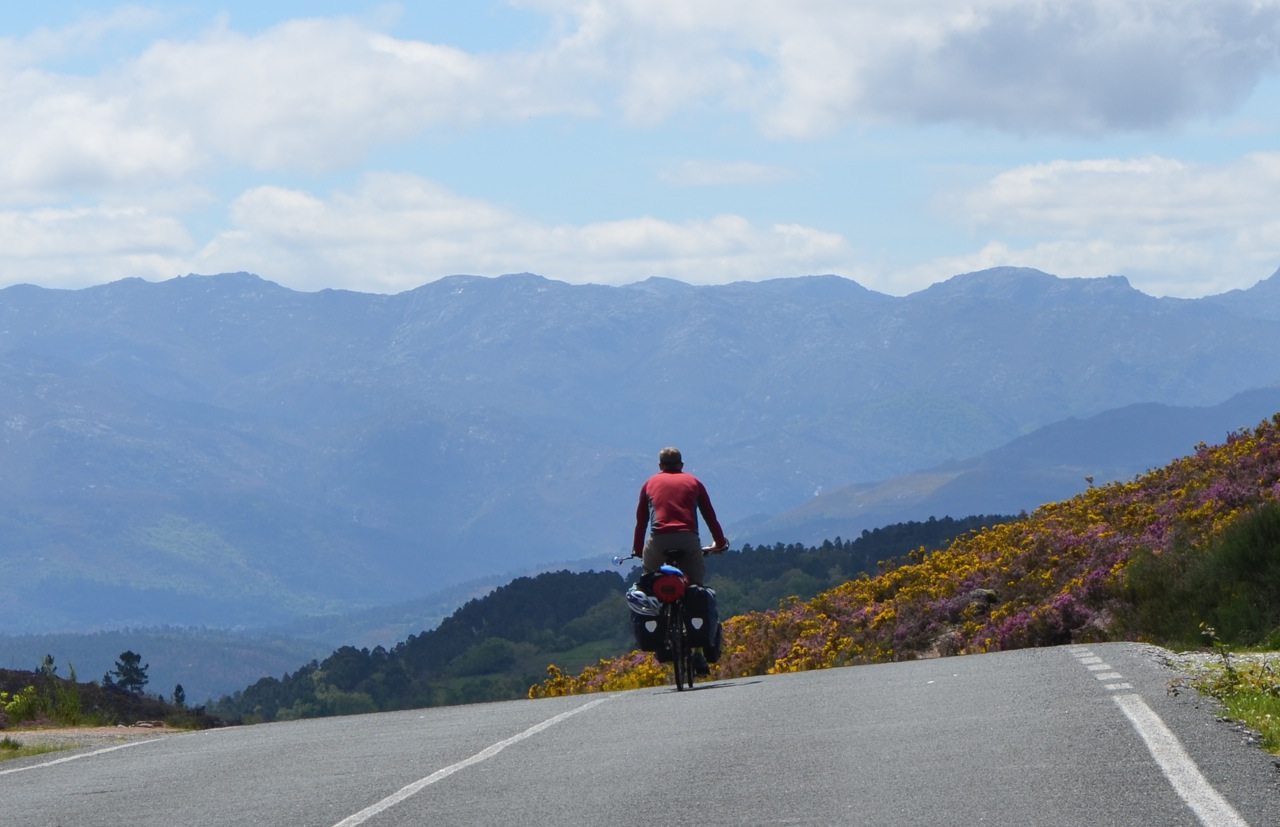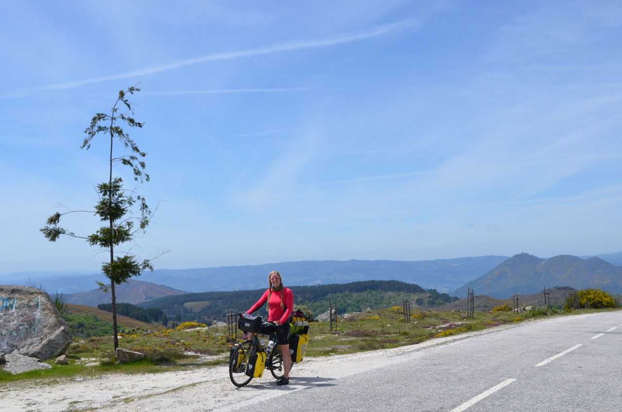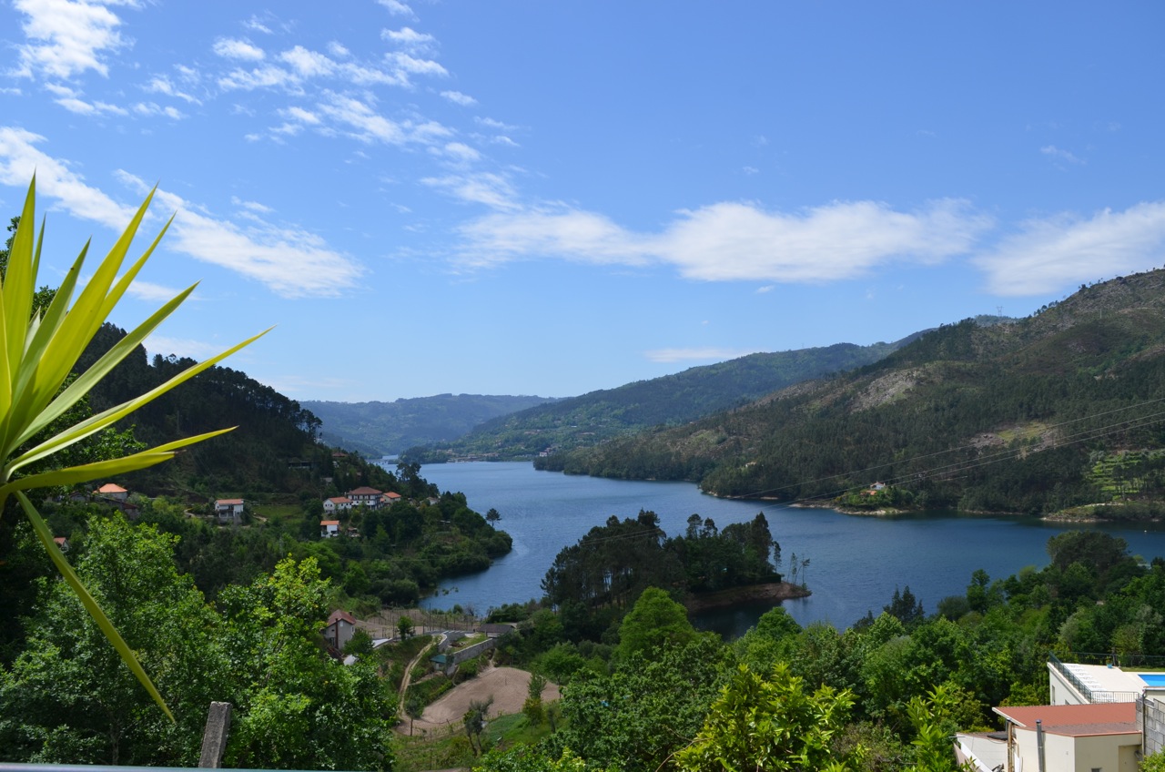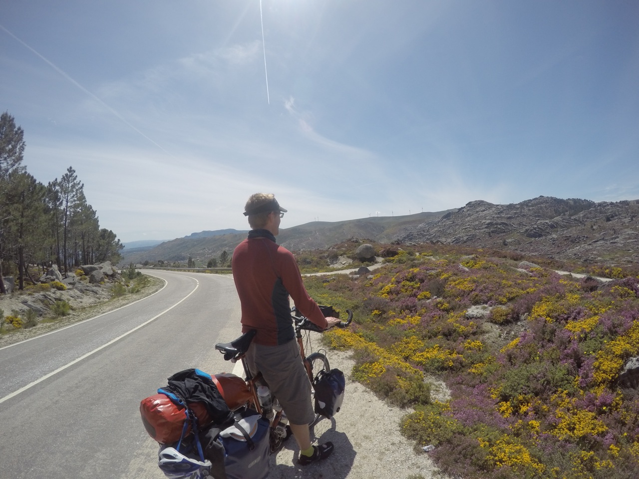 Out of Geres, we had a bit more downhill to do (zoom!) where we exited the national park before reaching the part of the Rio Caldo that is so wide it looks like a big lake. Then we crossed over and headed up out of the valley, more switchbacks surrounded by houses with big vegetable gardens, orange trees and vineyards. We sweated up in the afternoon sun and were sorry for the lack of hard shoulder given the (relatively) heavy traffic. But we made good progress, the views of the valley got better all the way up and it was a beautiful day to be out.