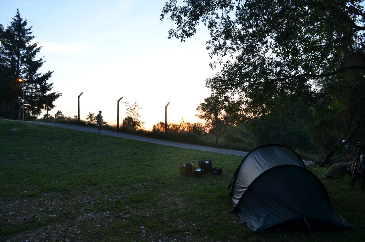 Our wild camping spot last night was gorgeous and I was looking forward to waking up to the amazing view again. But I woke up at 5am to the sound of RAIN! Why?! We were supposed to have two days of nice weather before the rain returned! I was so disappointed that I stayed awake in a rage until the alarm went off, when it was still raining. But we lay there for another 20 minutes and… it stopped! I poked my head out of the tent and saw the full moon in a gap between the clouds, the sky brightening. Hmm… looks like it might be safe.