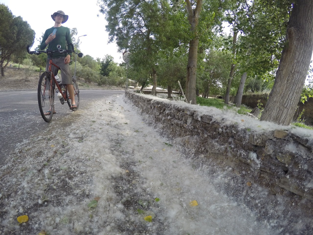 I saw a sign for a rest area / picnic site and we headed down the side road to look for it, down an insanely steep hill to a river with no camping options and with another big up on the other side! How far is this rest area? We decided to ditch the idea and go back towards town but had to get back up the crazy steep hill! Dave pedalled up in granny gear, committed once he’d started because he was clipped in with his cleats! I walked. Not the best diversion ever.