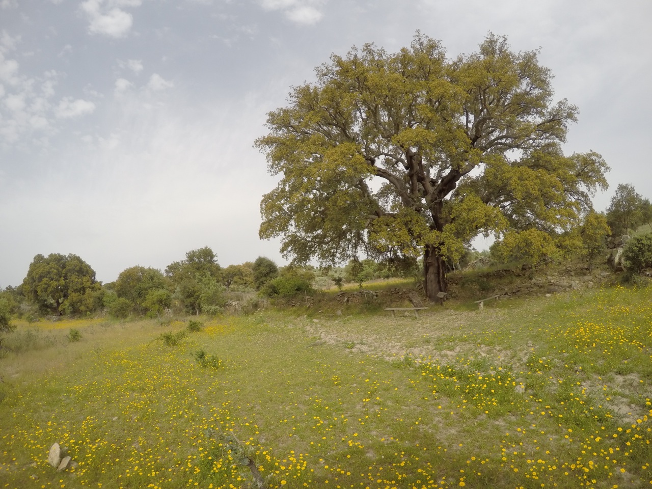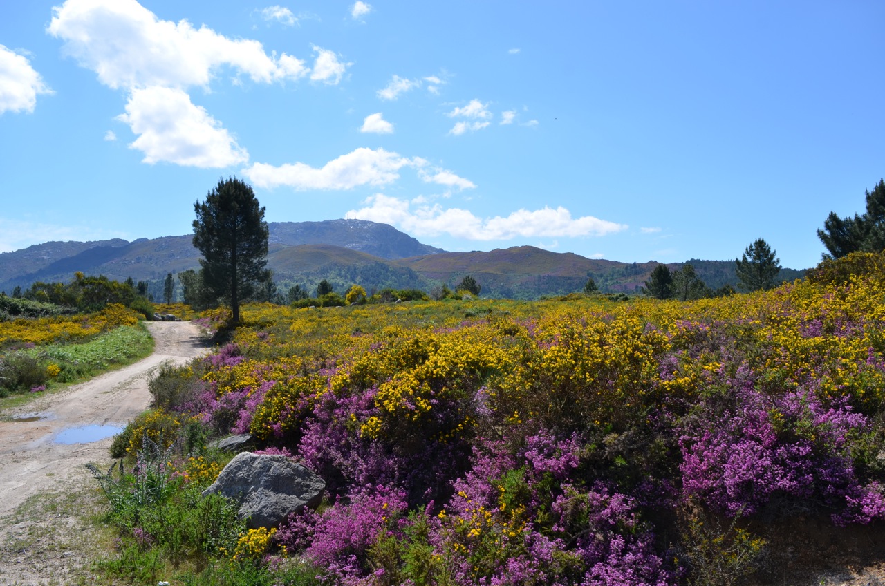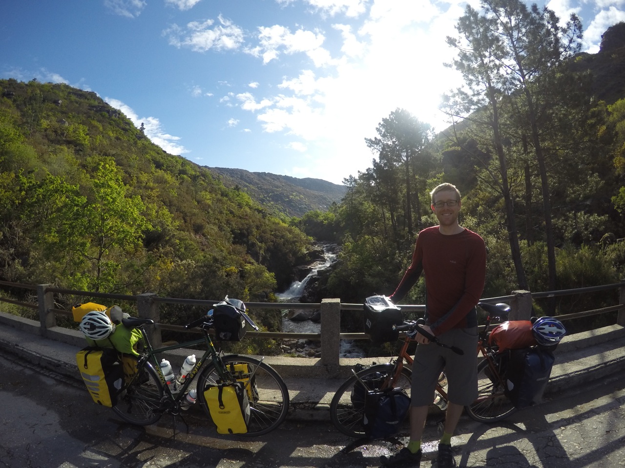 After we crossed into Portugal at the abandoned border post, the quality of the road surface deteriorated. We bumped downhill for a bit, then came back up again, all the while in a tunnel of sunshine dappled by gnarled oaks, proud pines and perfectly delicate beeches. The beech trees with their rows of thin bright leaves soaking up the light, leaving the ground below them covered only in coppery crinkled leaves from years gone by. We crossed over rocky rivers of perfectly clear water and filled our bottles from the mountain streams. The forest was fresh and fragrant and we think we’ve established that the tall trees with the peeling bark and thick narrow leaves smell the best! Yet to find out what they are.
