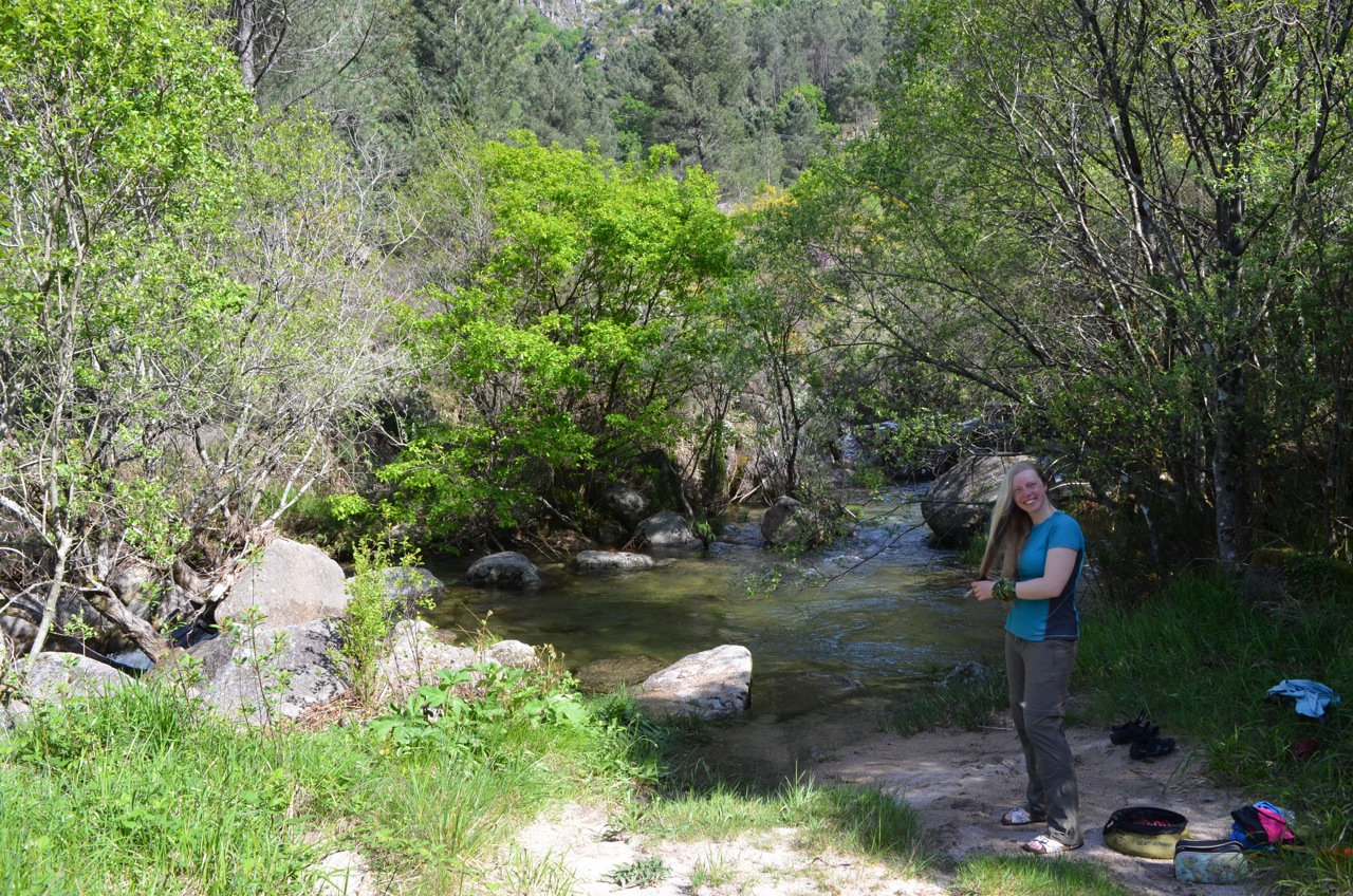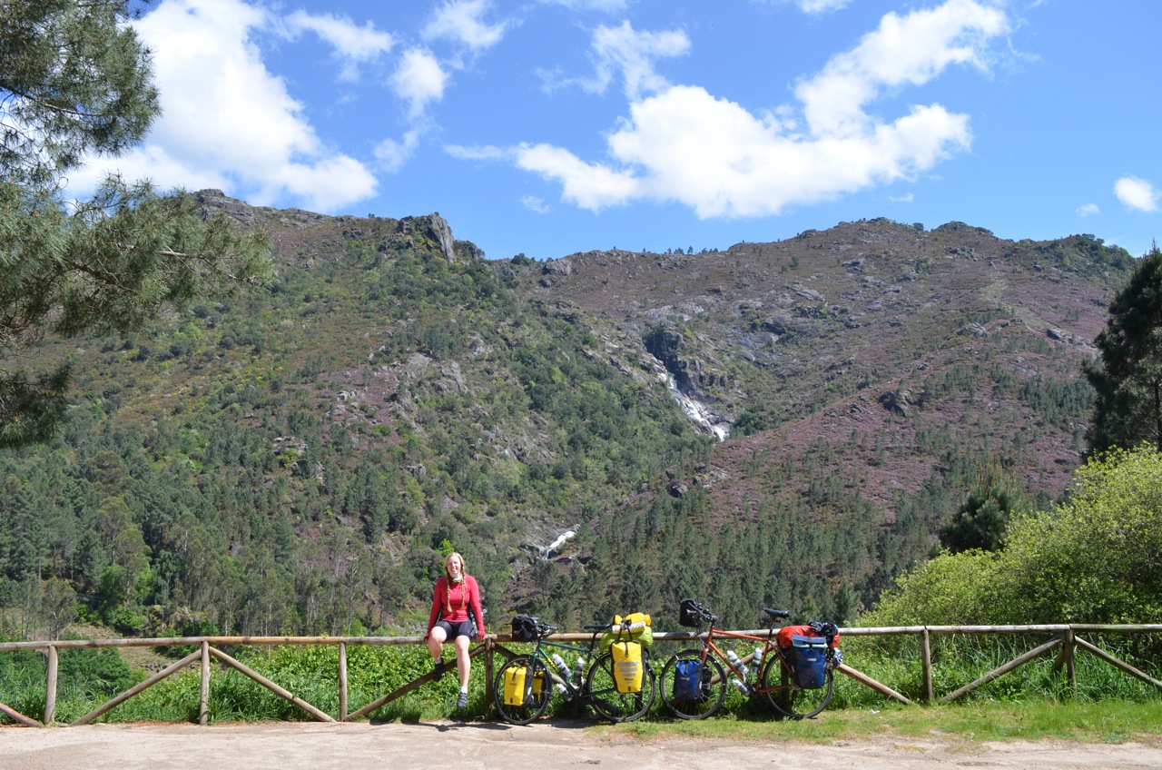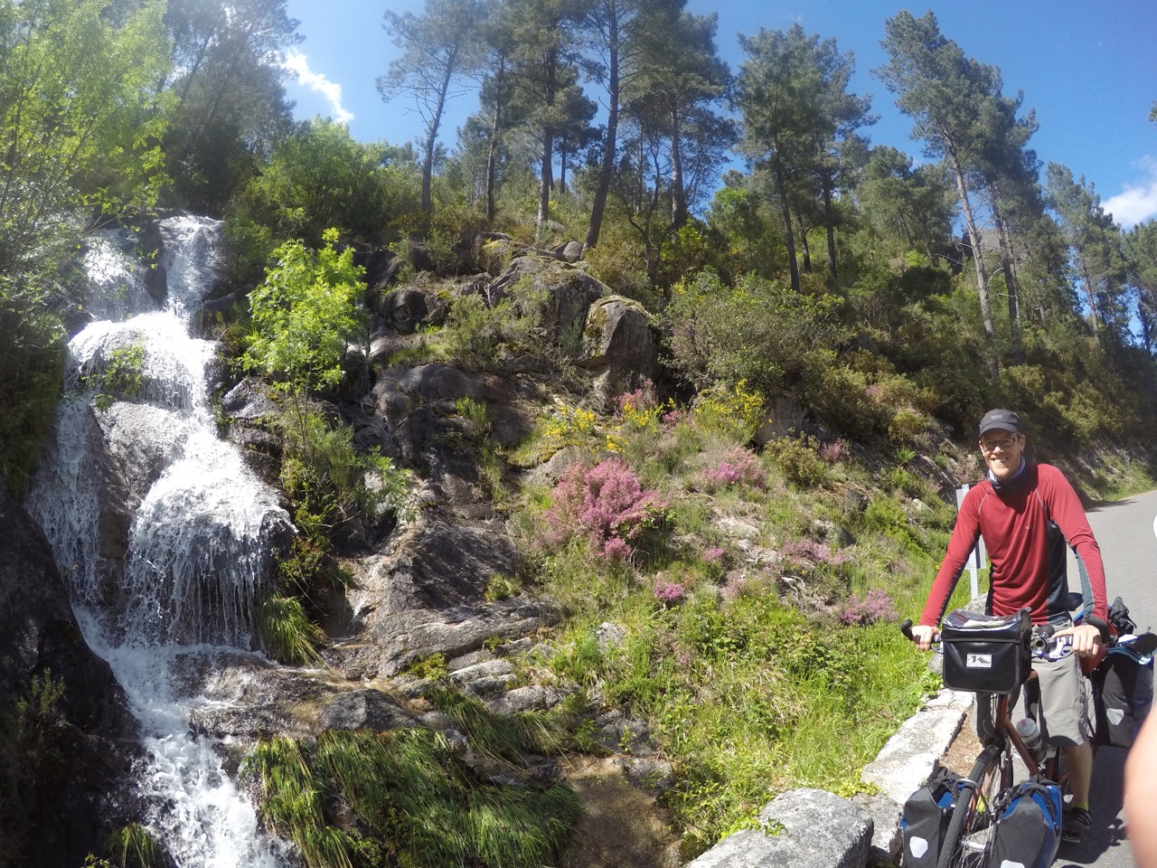 After dozens of switchbacks on the lovely quiet roads, we came past some picnic sites and there were a few people around. Then there were three switchbacks that weren’t paved like the rest of the road, they were cobbled!! So we took those slowly and arrived in the town of Geres where we resupplied at the hidden bakery and grocer, ogled the fancy hotel spas, had second lunch and got free wifi with a coffee. It was all pretty touristy and built up and it wasn’t as nice as the reserve we’d just come from, but we did need its handy facilities.
