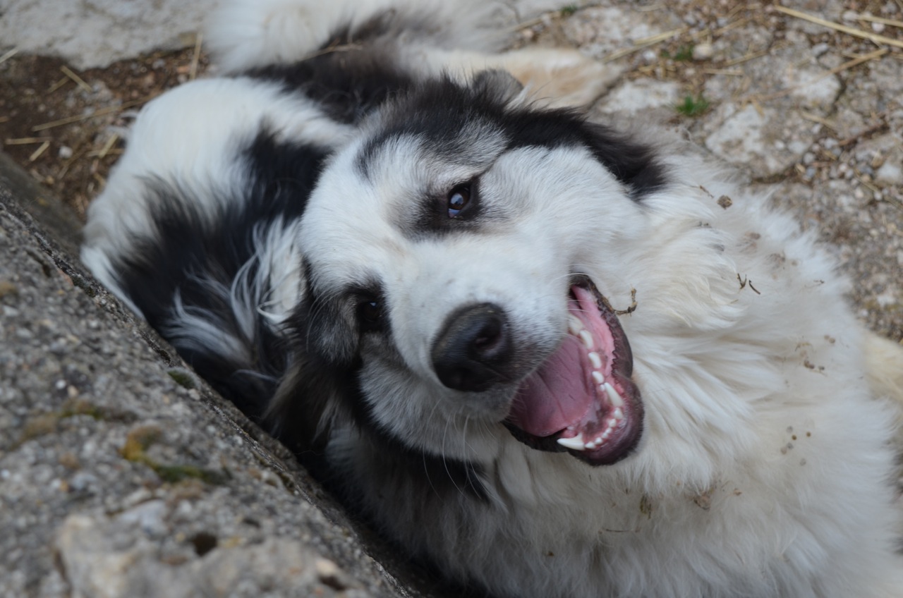 Silvia asked us if we had time before dinner to see their chickens. Of course we did, being basically tramps these days (in the best sense of the word). So we went up another track, at the top of which was a massive black and white dog bounding around and checking out the car. This was Silvia and Rafael’s Pyrenean Mountain Dog (Great Pyrenees). He is only eight months old! Apparently he will put on another 20 kg before he is fully grown, so will weigh in at about 60 kg.