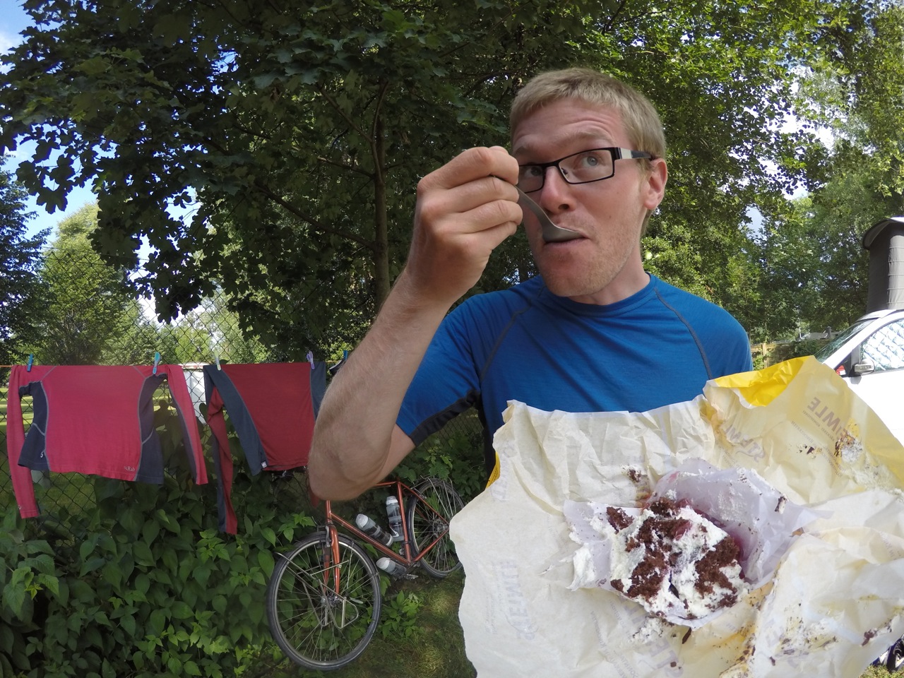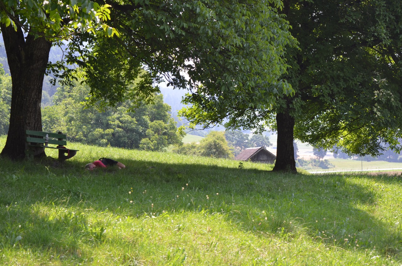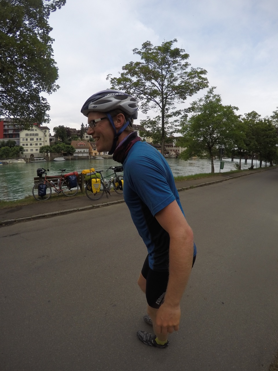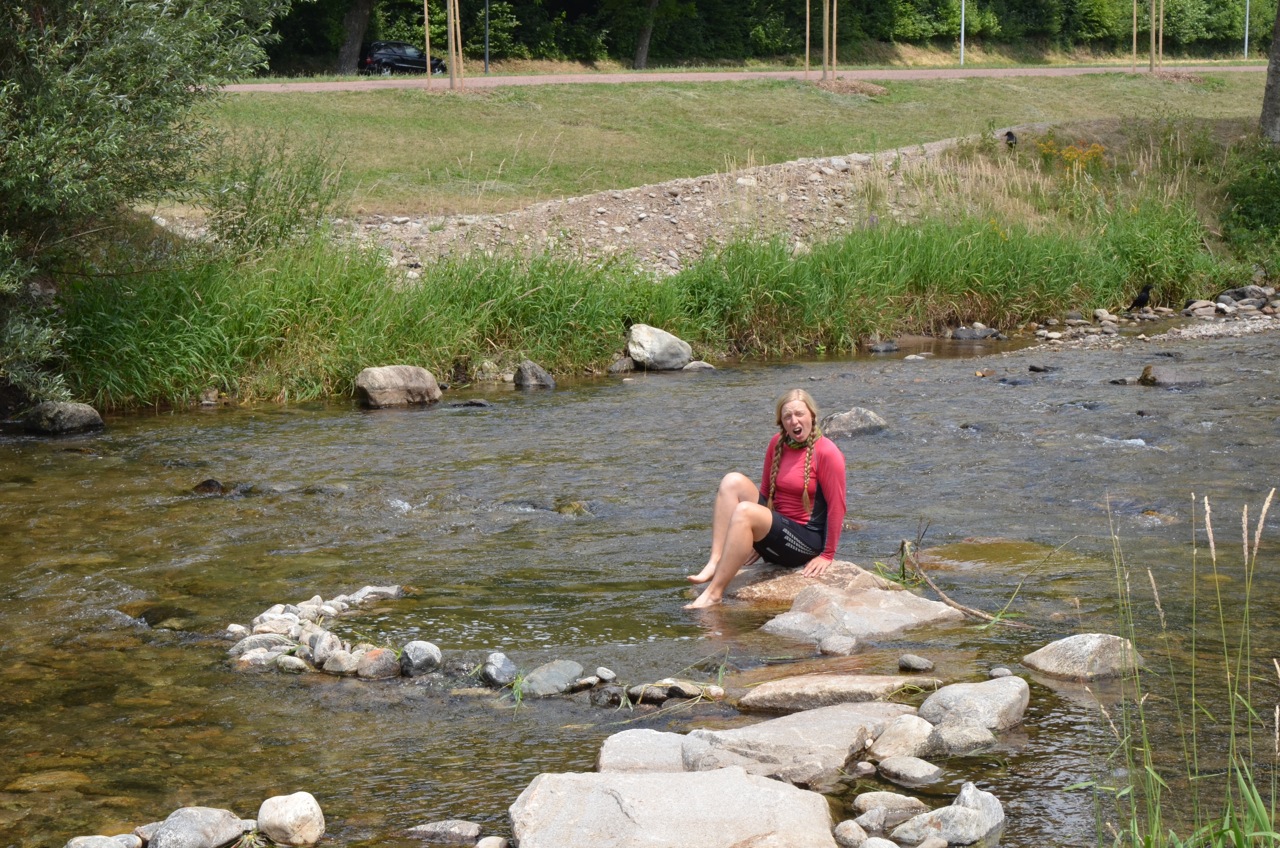 It was still incredibly hot and even after a cool shower, I was too zoned out to do anything. Dave pitched the tent then I made dinner and we ate before the sun finally set around 8pm. I took the time to ease my muscle soreness with some yoga whilst Dave had some laptop time. He found out that the river that we crossed just before the campsite joins the Rhein! Hurray! All downhill from here then, right?
