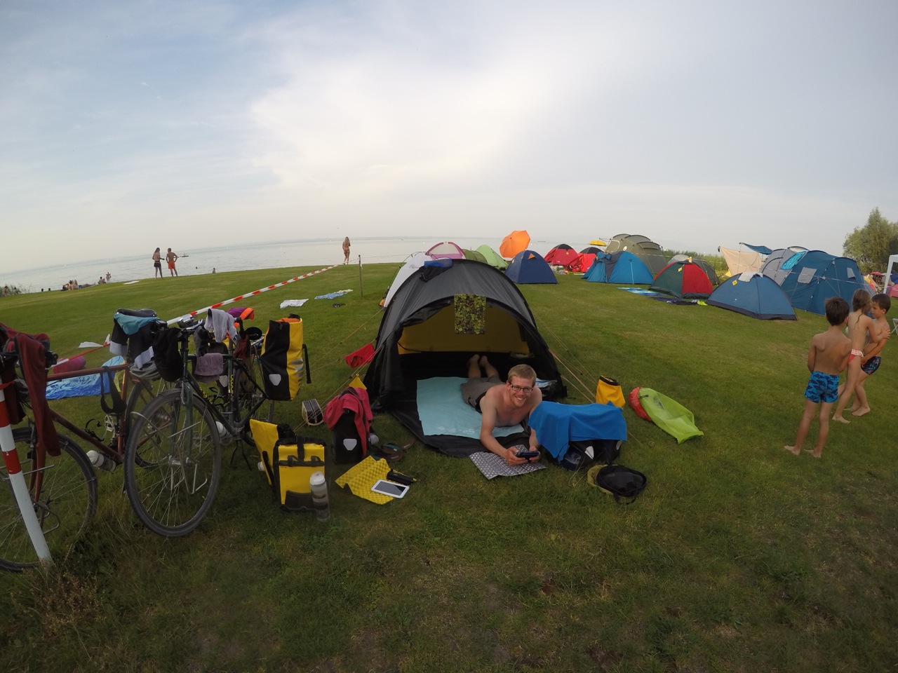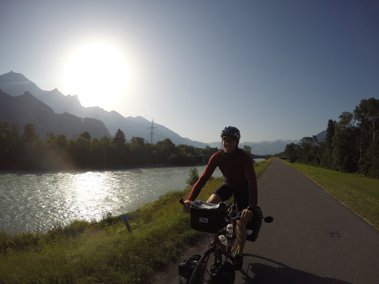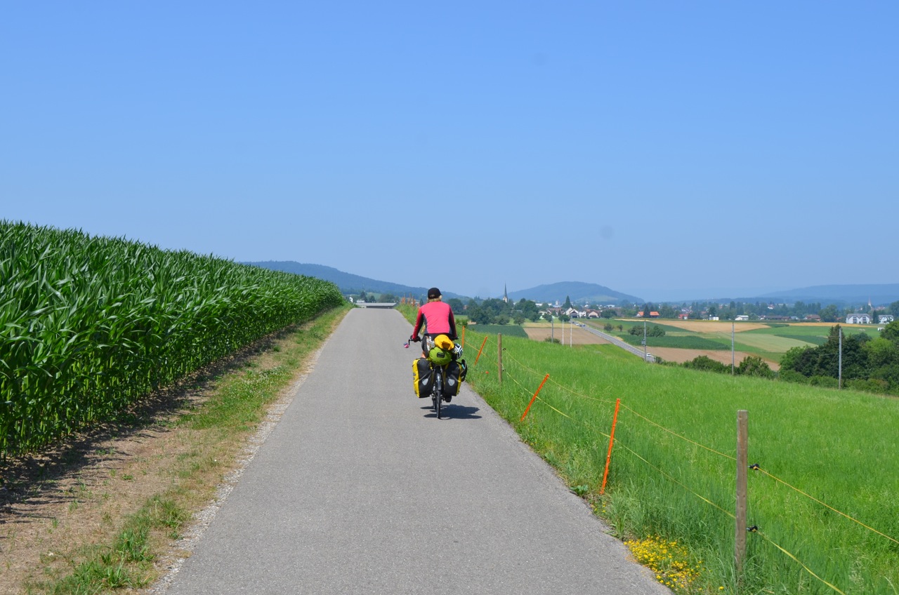 It was still incredibly hot and even after a cool shower, I was too zoned out to do anything. Dave pitched the tent then I made dinner and we ate before the sun finally set around 8pm. I took the time to ease my muscle soreness with some yoga whilst Dave had some laptop time. He found out that the river that we crossed just before the campsite joins the Rhein! Hurray! All downhill from here then, right?