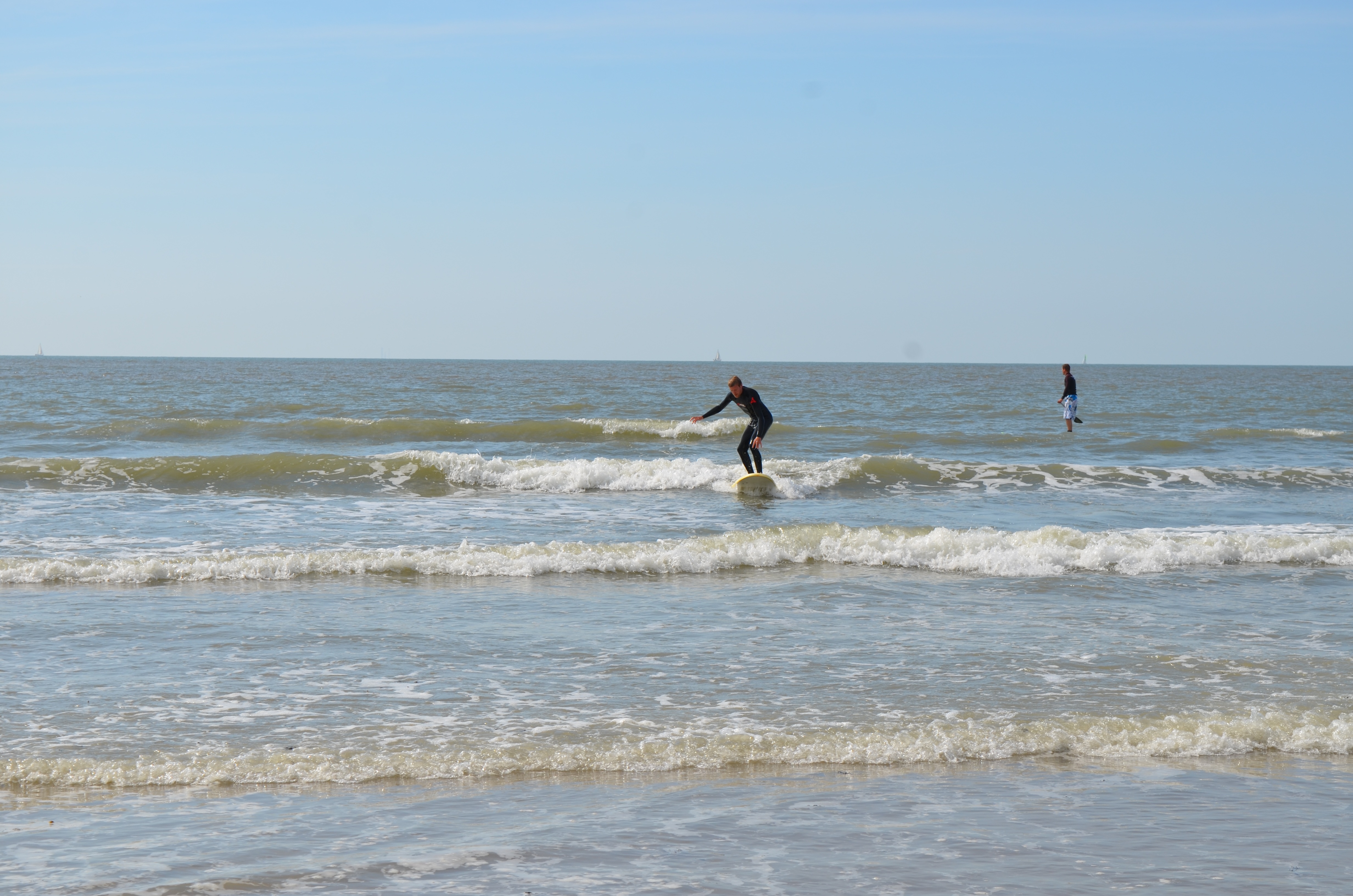 We’ve spent the last few days walking in the dunes and hanging out on the beach. The day after we went swimming, we decided to take a surf lesson. Our guide was Johnny, an Aussie surfer dude who is waiting impatiently in the Netherlands for his girlfriend to finish her degree so they can move to Johannesburg and find some proper waves. He was hilariously and explicitly unimpressed with the surf available in the Netherlands while at the same time trying to persuade us we were going to have fun.
