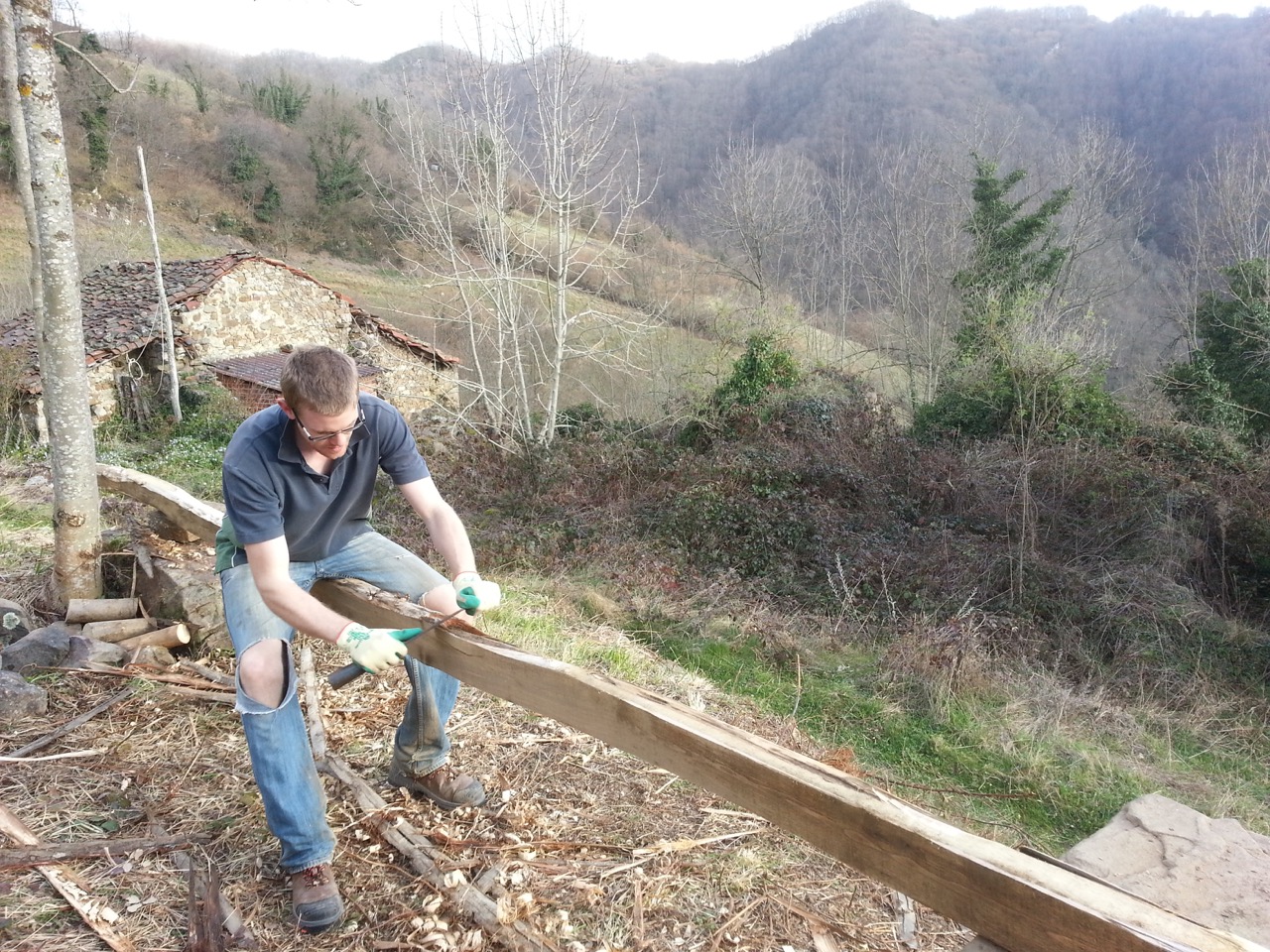 7 Stripping bark Previous Next Published March 9, 2017 at 1280 × 960 in Tent platform in progress Shaving off the bark