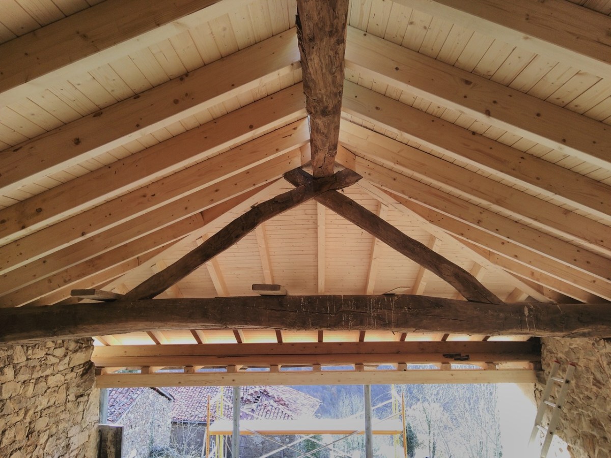 42 Sandwich inside apex Previous Next Published December 10, 2017 at 1280 × 960 in The Roof From inside (with light coming in from gap in apex)