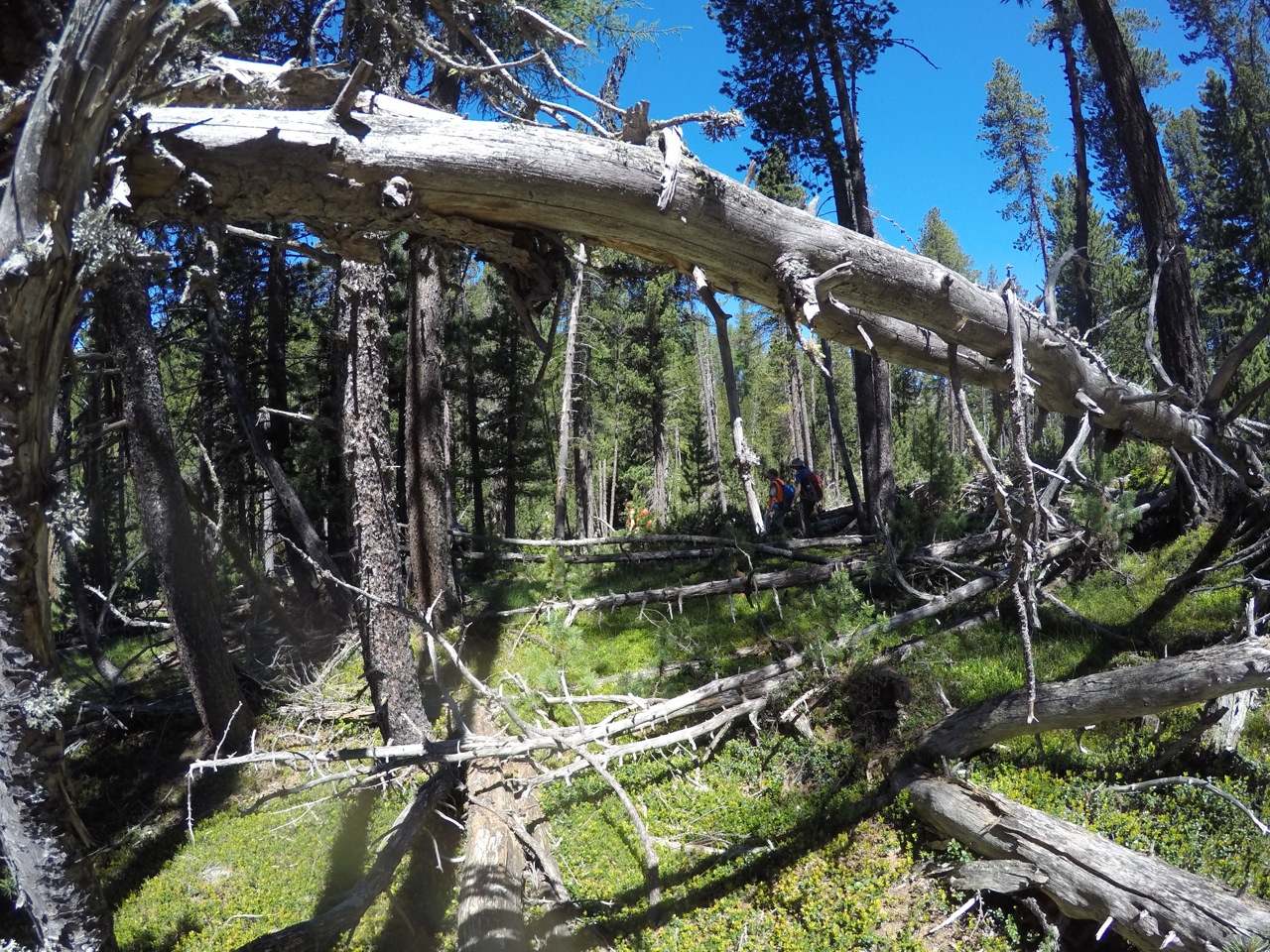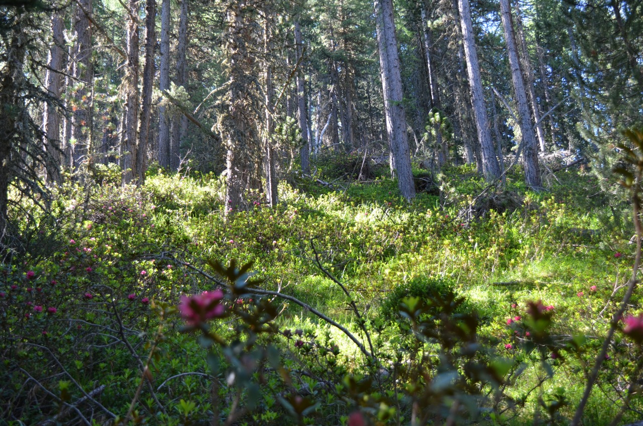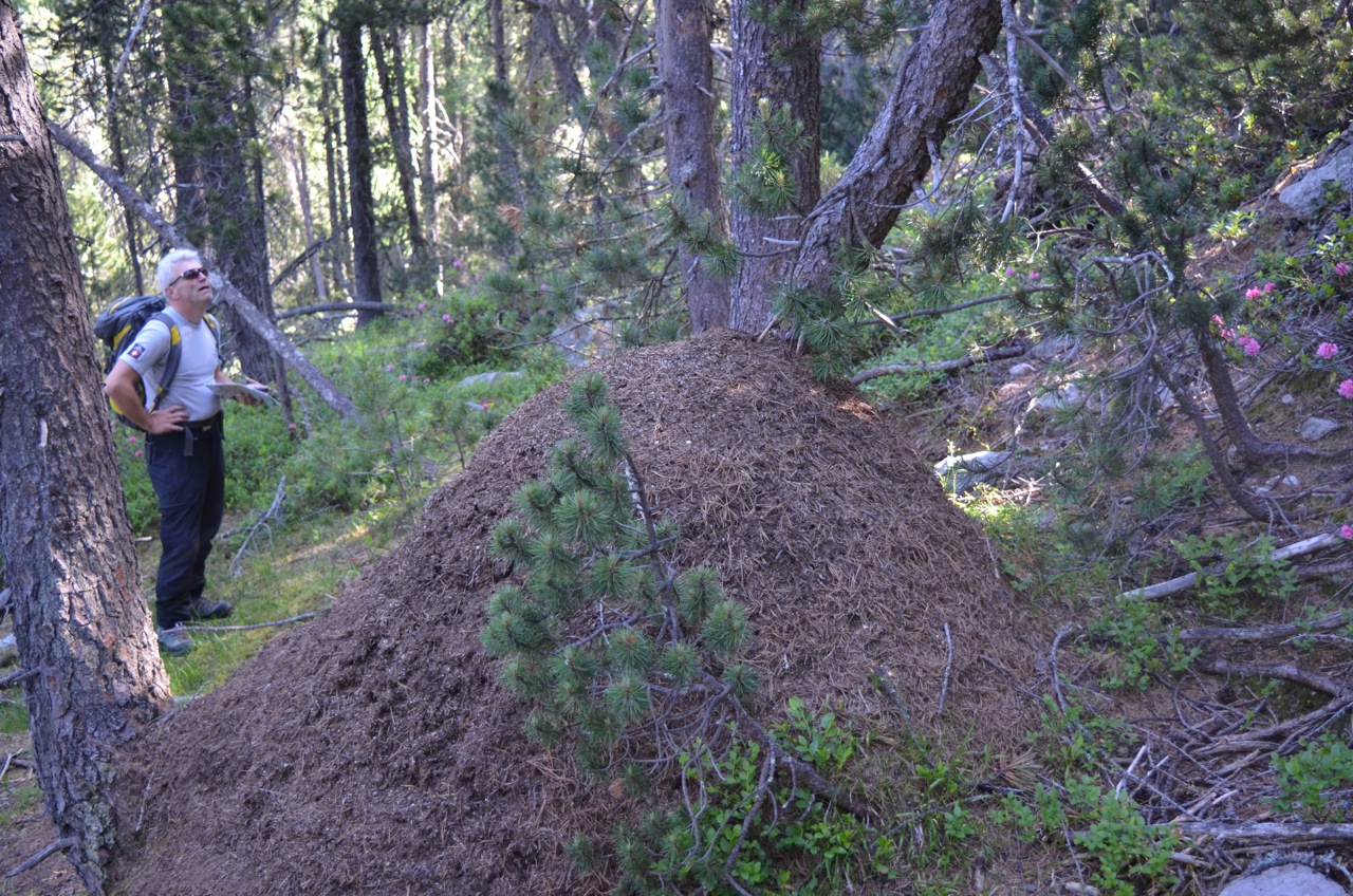 Bison also enjoy a good scratching post, so wherever there is a suitable branch, a sand patch emerges underneath it and the branch gets polished by bison bodies. When the post eventually buckles under the strain, the post is abandoned and pioneer plants enjoy colonising the free space.