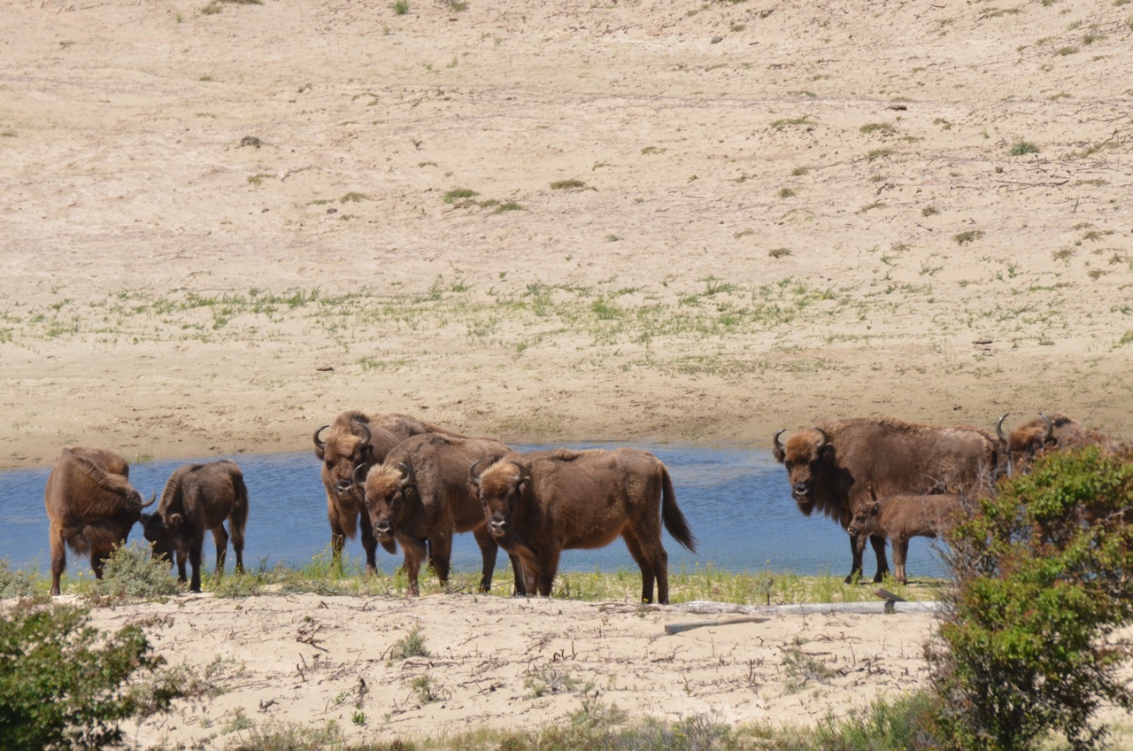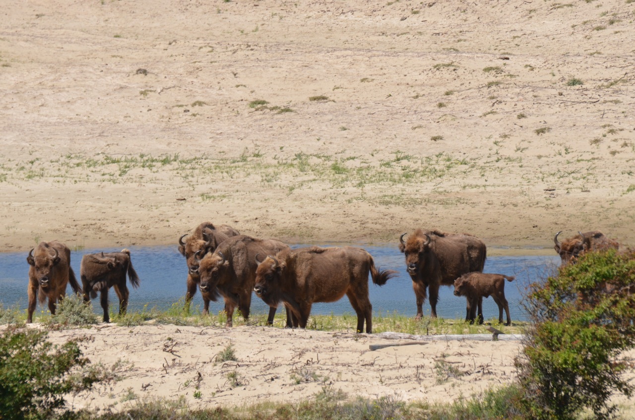 The bison area is 330 hectares, which doesn’t sound that big, but the animals are surprisingly difficult to find. The dunes have lots of dips and hillocks, so you could be 50m away from the whole herd without knowing it! To help researchers and the public find the herd, one of the females has a GPS collar, so you can go online and track their movements every hour – very cool.