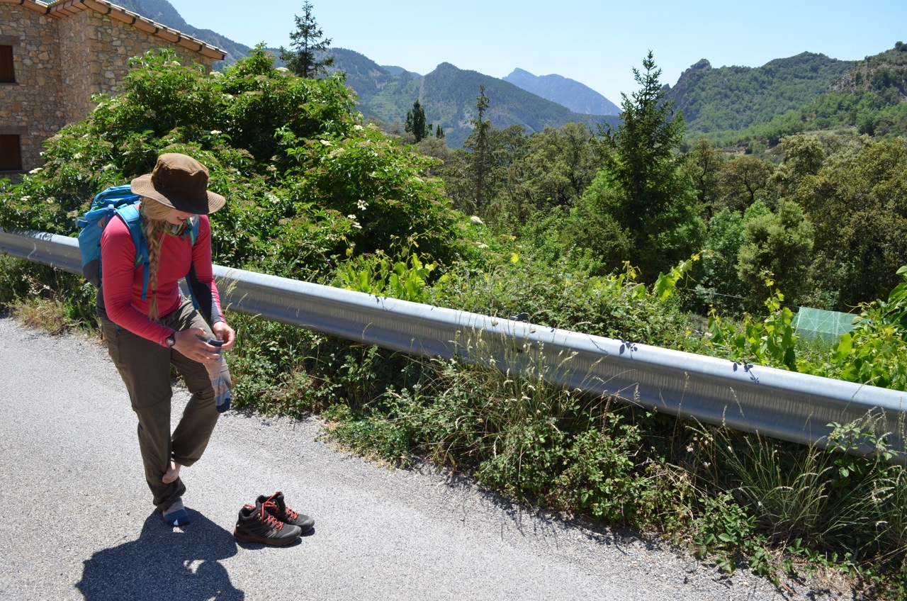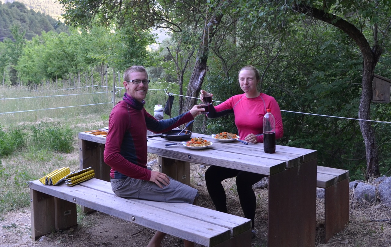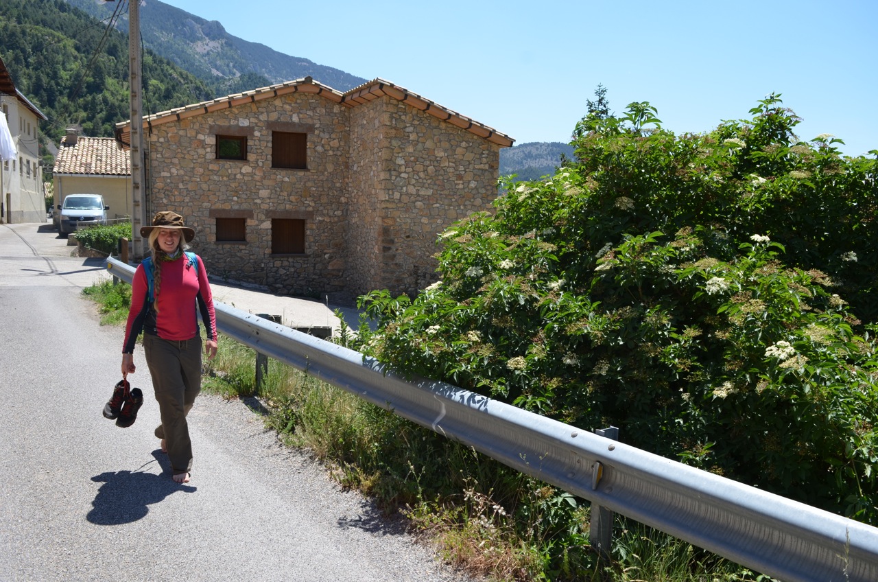 That evening we got to a campsite in Organya, set up, showered, laundered, cooked, ate and were about to pack up when another touring cyclist arrived. He rode into the middle of the camping pitches, dismounted, and promptly dropped his fully laden bike on the ground. Thud. We gave him a wave and he set up before coming over to say hello.