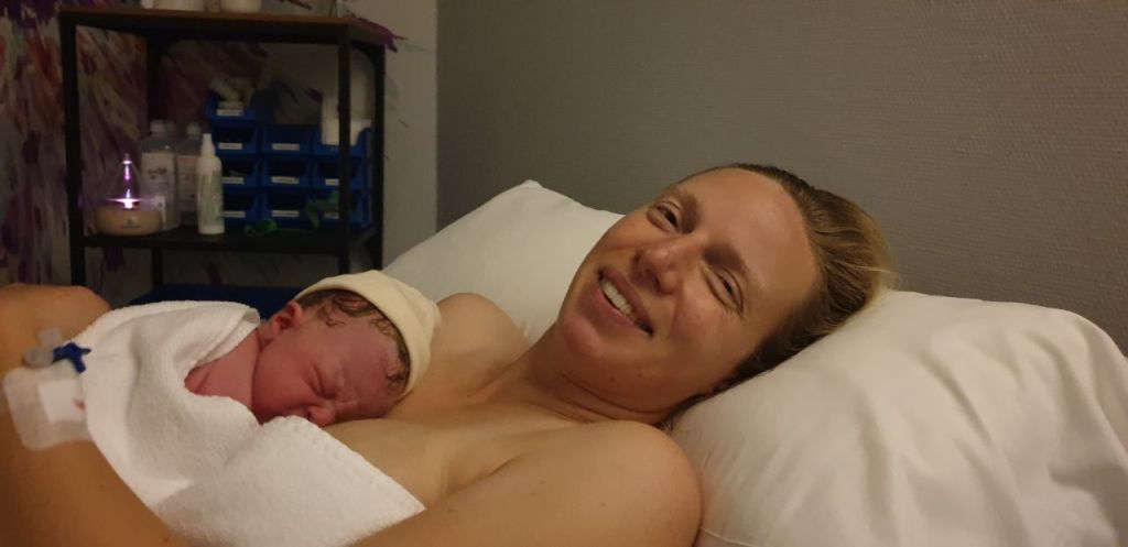 In that moment, when I looked down and saw her, everything just paused for a second. I felt baffled. ‘What do I do with that?’ I wondered. ‘Why does she have hair already?’ I’d been so focused on the birth experience that I hadn’t really thought about what it would be like to meet my baby. I felt quite protective of her and brought her clumsily to my tummy as I perched on the edge of the bed, shaking from the adrenaline, the warm cord still attached. I started laughing. Haha, I just gave birth and here is the baby – wild! I had only arrived at the hospital three and a half hours before.