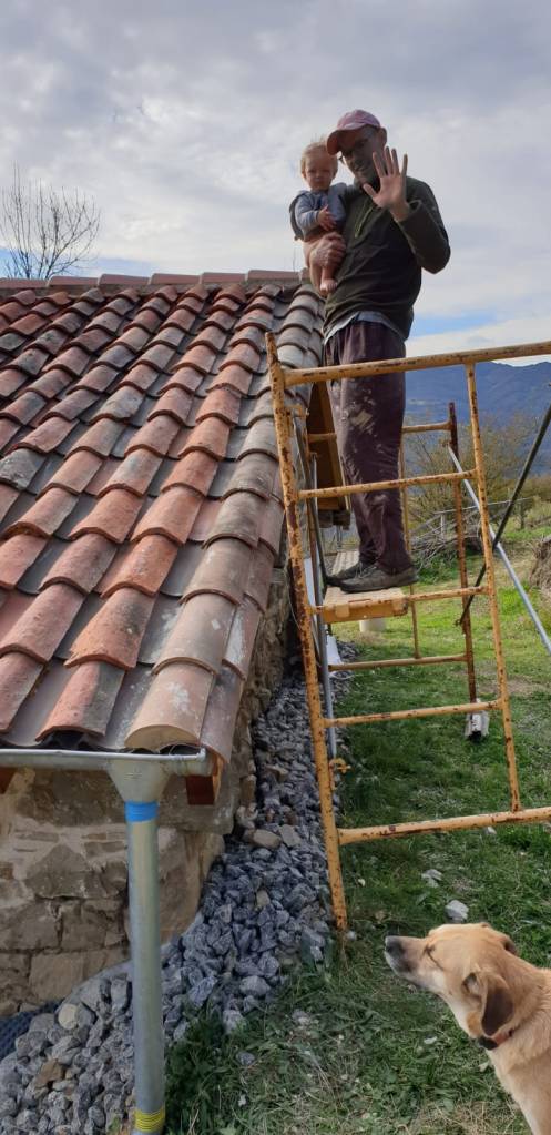 Dave spent a day or two fixing some broken tiles on the roof. The whole line of ridge tiles had to be taken down and re-cemented. Now it’s all looking ready for winter.