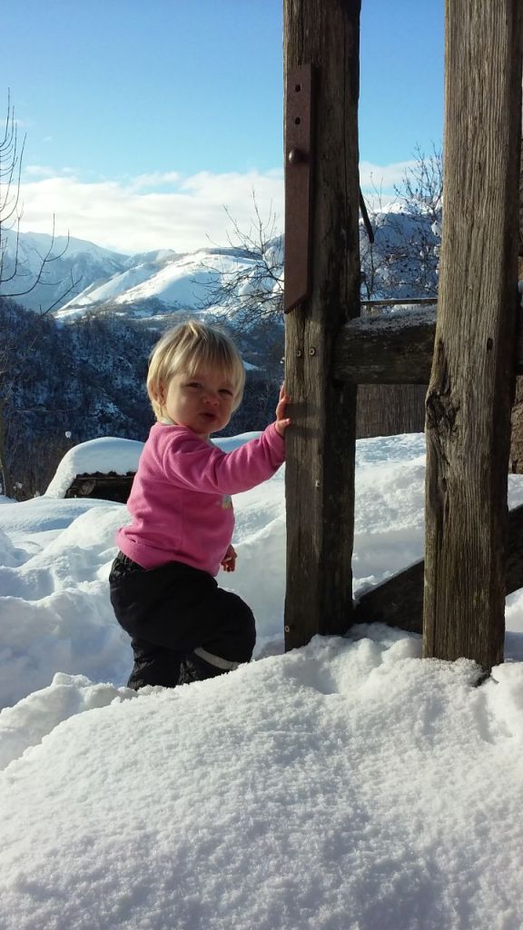 January has been cold and it snowed a lot. Just getting around the village in all the snow and ice has been hard work. Dave spent a good amount of time cutting and bringing in firewood. We shovelled a lot of snow in the car park, sometimes just finishing to clear the car out as the snowplough made it up and formed a new bank of snow to clear away. The villagers skidded around on quad bikes and in wellies to tend their animals and cut firewood. Muffled grumblings about the winter weather and all the extra work emerged from layers of winter clothing.